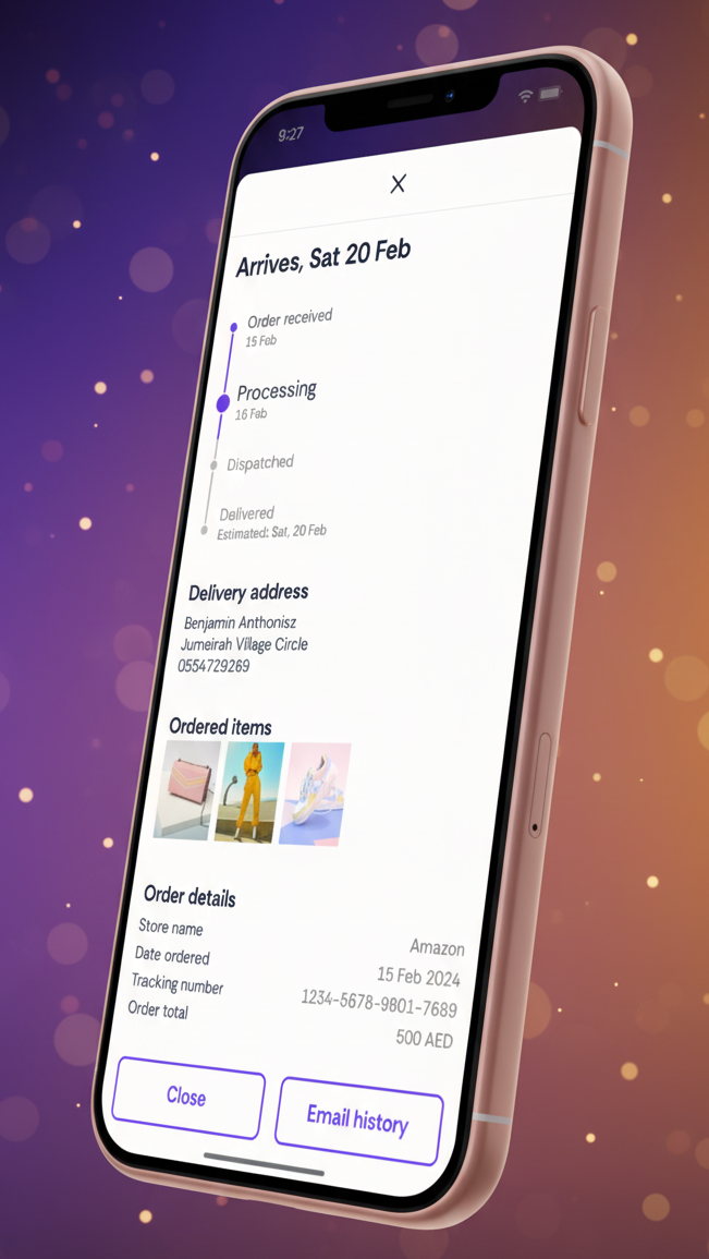 In the home screen, under the “Order Tracking” section, tap on “Connect Account”